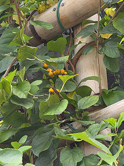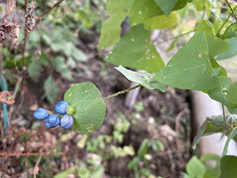 ![]() イシミカワ 横浜市営地下鉄センター南駅から北に向かい、桜山歩道橋を渡って宮戸口から公園に入りました。円形広場で勝山会長からの挨拶の後、観察の始まりです。円形広場にはつる植物が沢山植えられていて、イシミカワの実・ツルウメモドキの実が丁度見頃でした。ここから宮戸の大池に沿って西に進みます。イヌシデ・アカシデ・ソヨゴ・ウワミズザクラ・ハクウンボクなど、林間の木々を観察しながらゆるい坂道を登ってゆきます。足元にはコブナグサ・ササガヤなどが拡がっています。尾根に出たところで左折。コウヤボウキ・カントウヨメナを見ながら、ステージ広場でコウヤマキの雌花を探しました。ここからゆるい下りになり、ばじょうじ谷戸にたどり着きます。休憩舎付近で散開して昼食休憩になりました。後半はばじょうじ谷戸口から尾根道に入り、境田貝塚を目指します。立派なアカシデの木、イヌザクラの冬芽が印象に残りました。出発地点の宮戸の大池が見える広場で勝山会長の総括の後解散。気温陽射しとも快適な一日でした。(市川 記)
